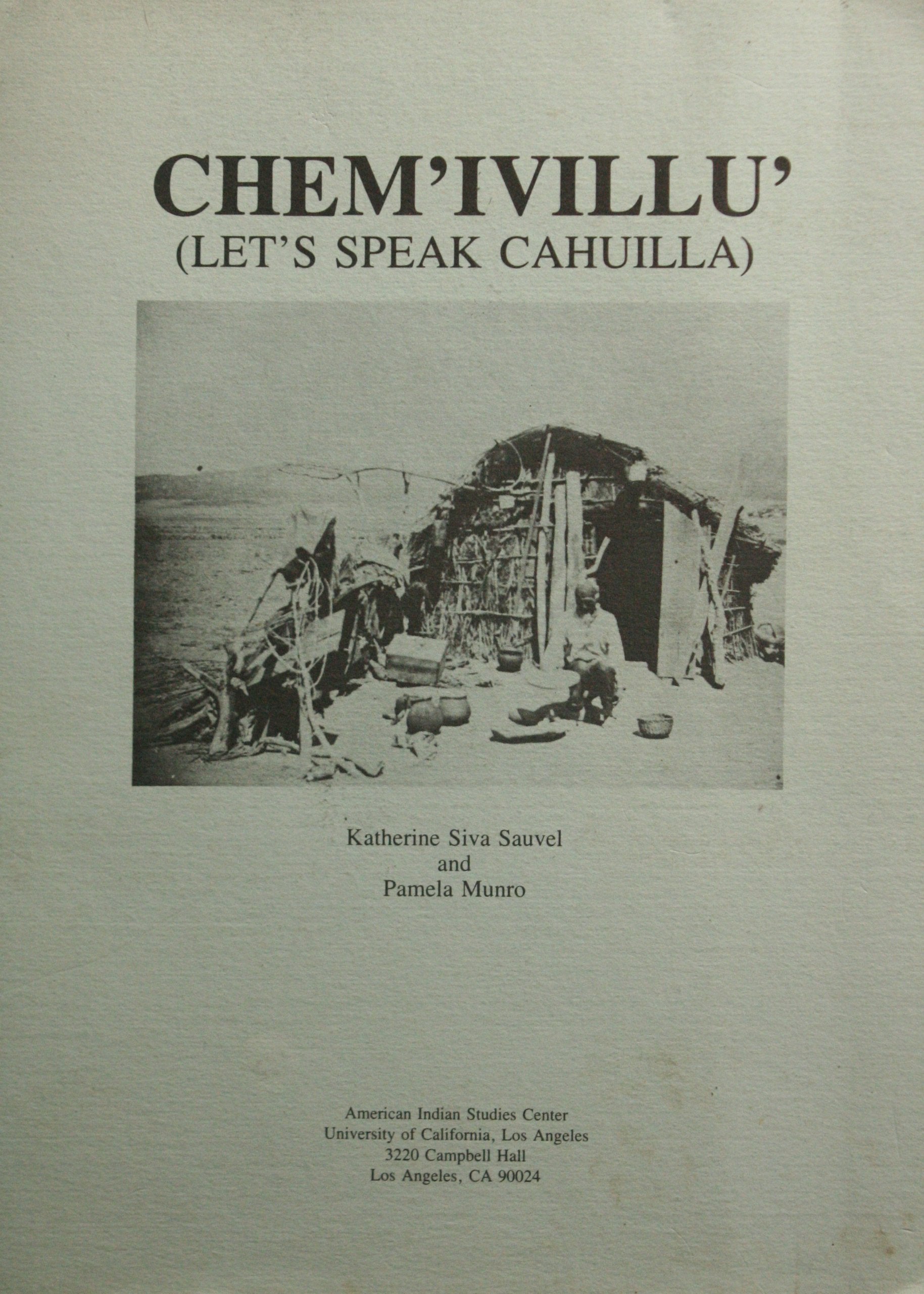 Cahuilla is a language of the Takic branch of the Uto-Aztecan family of American Indian languages, spoken on several reservations in Southern California, mostly in Riverside County. Chem’ivillu’ is the first textbook developed for those who want to learn Cahuilla as a second language. It is also the first book devoted entirely to the Mountain dialect of Cahuilla. The project was funded by a grant from the UCLA Institute of American Cultures, under the sponsorship of the UCLA American Indian Studies Center.